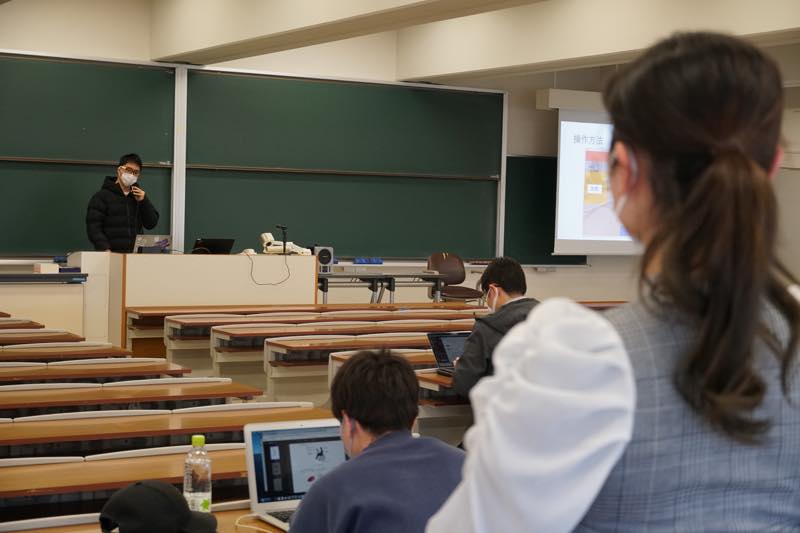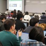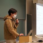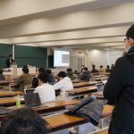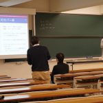 一人あたり質疑応答込み12分と例年通りの短い発表時間ですが、2会場のパラレルセッションとして次々に研究発表が行われました。昨年、一作年のコロナ禍による制限された状況とは違い、B4学生は基本的に発表時以外も対面での会場参加、B3以下の学生は会場聴講でも動画視聴でもOKとしました。会場では、学生からの質問・コメントもかなり活発に行われており、コロナ禍より前の従来の卒論発表会の姿が戻ってきました。その様子の写真を掲載します。ぜひご覧ください。