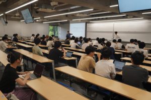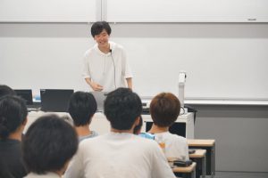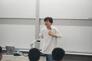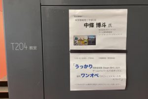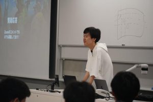 さる2024年7月22日(月)夕方に、本学部OBの中條博斗氏(2022年卒、ポケットペア社リードネットワークエンジニア)が、「うっかり同時接続数Steam歴代二位のゲーム(パルワールド)を作ったら運用ワンオペですごいことになった件について」と題して、本学で講演会を行いました。