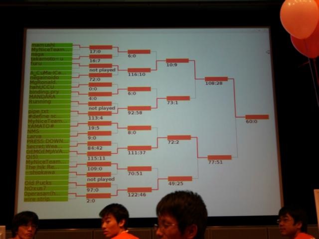 また、同時に行われたJava Challenge (対戦型のゲームプログラム作成) にも参加し、トーナメント方式で、見事ベスト8まで勝ち進みました。