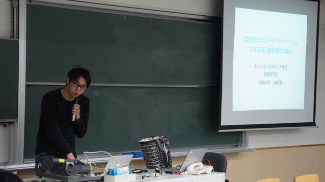 2017年2月17日(金)、18日(土)の2日間で、本学部の特別研究発表会(いわゆる卒論発表会)を行いました。総勢127名が研究テーマ113件の発表を行いました(複数人数で1つのテーマに取り組んだものもあります)。発表会の場では、プレゼンテーション後の質疑応答の時に、教員だけでなく、学生から(B3からなど)も活発な質問が出て、有意義な発表会となりました。