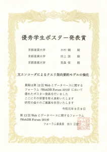 - 第12回 Webとデータベースに関するフォーラム(WebDB Forum 2019)受賞ページ