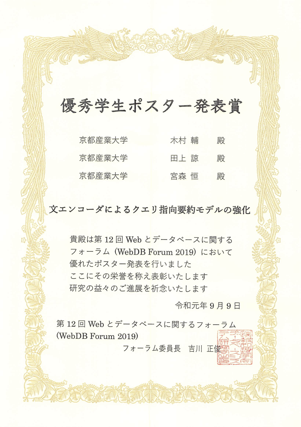 https://db-event.jpn.org/webdbf2019/award.html - 第12回 Webとデータベースに関するフォーラム(WebDB Forum 2019)ホームページ