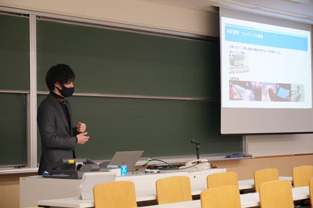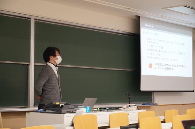 2021年1月30日(土)に大学院先端情報学研究科の2020年度修士論文発表会が開催されました。総勢16名が博士前期課程学生が、修士論文の内容についてプレゼンテーションを行いました。なお、コロナ禍であったため、人が集まりすぎないよう、会場となった教室への入室には制限をかけた上で発表会を実施しました。
