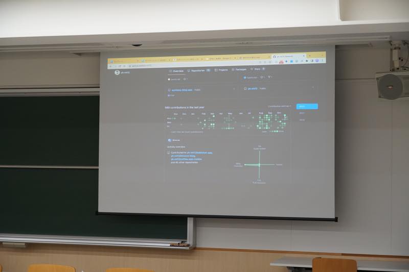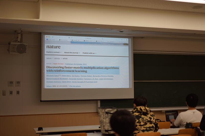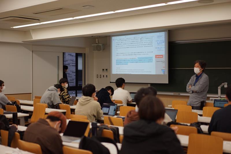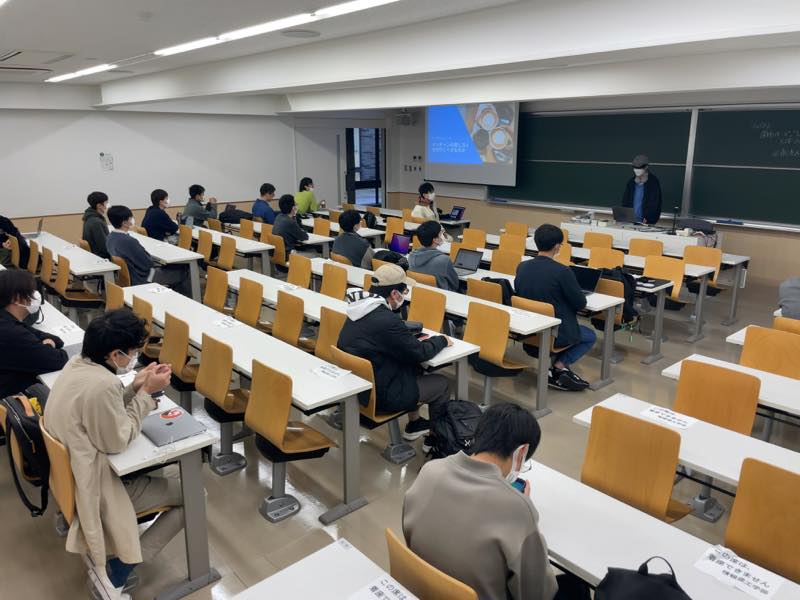 授業では直接扱わないような専門分野に関する様々なトピックの紹介や、デモ、学生LightningTalkなど、週に1回のイベントとしてランチタイムトークを行っています。2022年度は、下記のような形で実施しました。