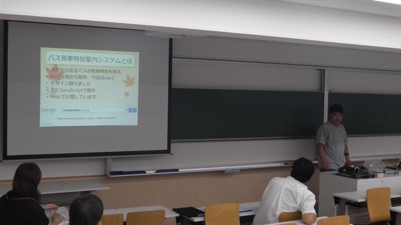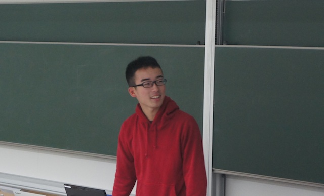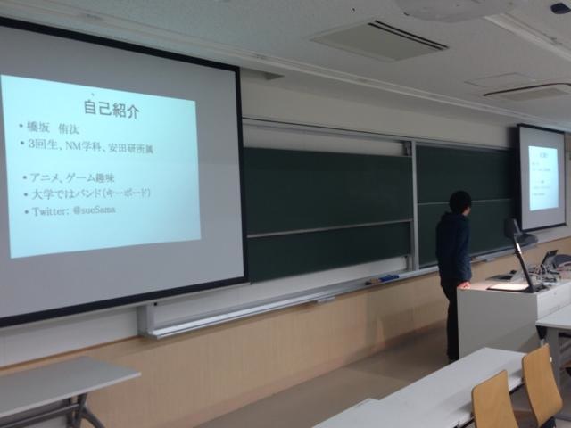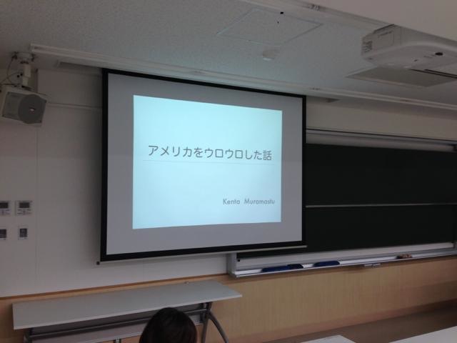| 2013年10月18日 | アメリカをウロウロした話(B1村松君) 夏休み中に2週間ほどサンフランシスコに滞在して、いろいろな場所や企業を訪問した話を報告してくれました。 |
