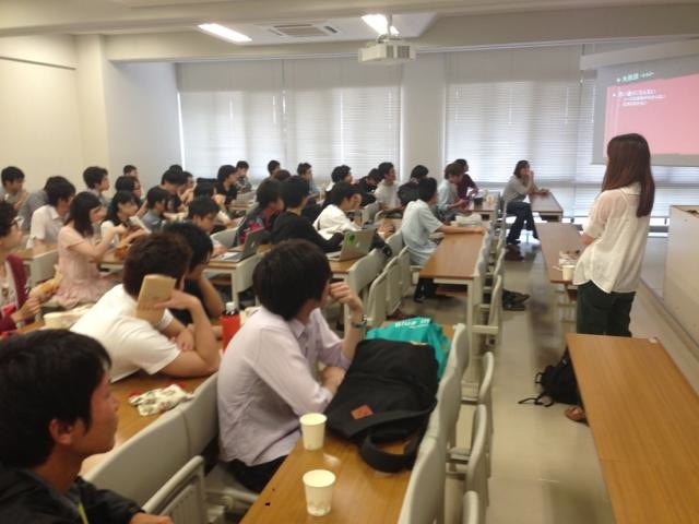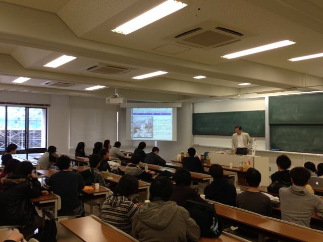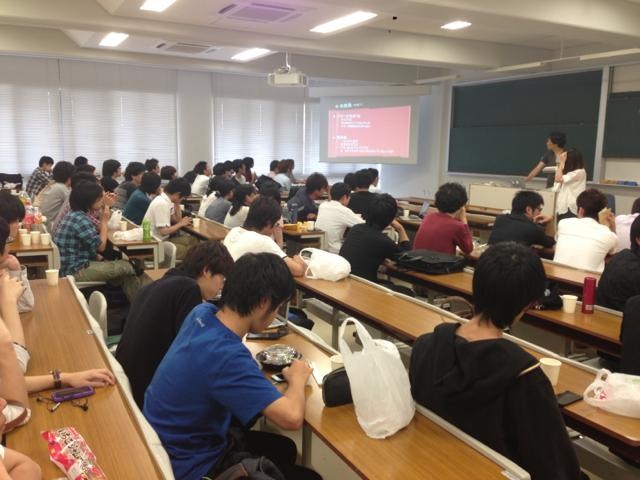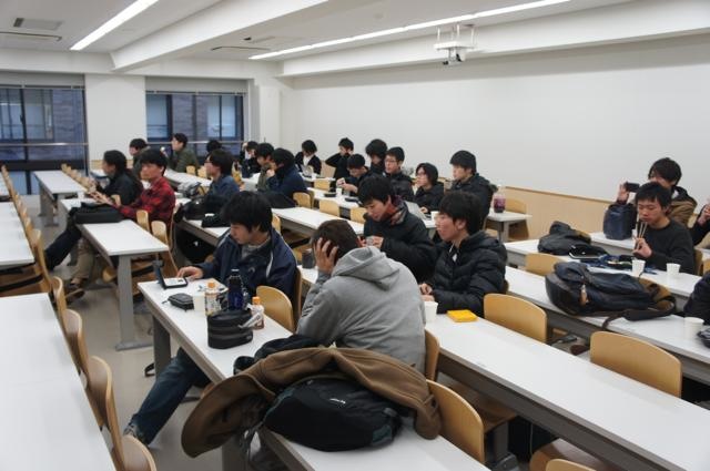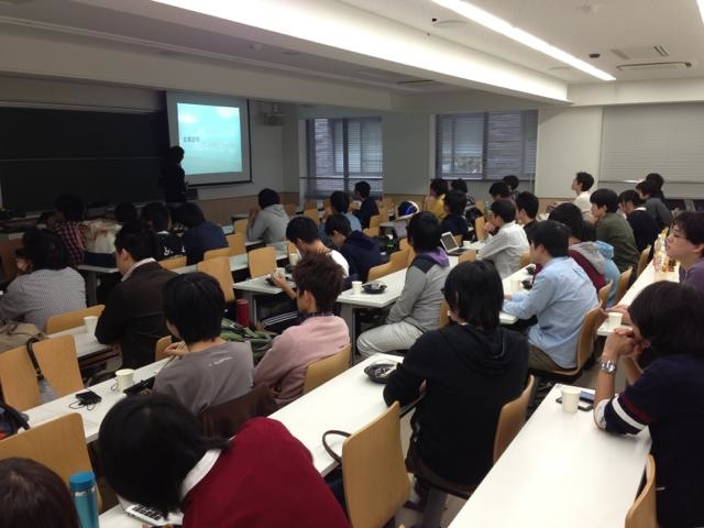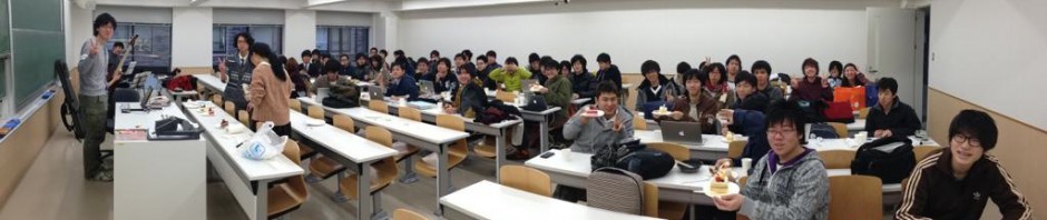 2013年度のランチタイムトークは、春学期は12402教室(12号館4F)、秋学期は14102教室(14号館1F)で行いました。いずれも金曜日の昼休みでした。
