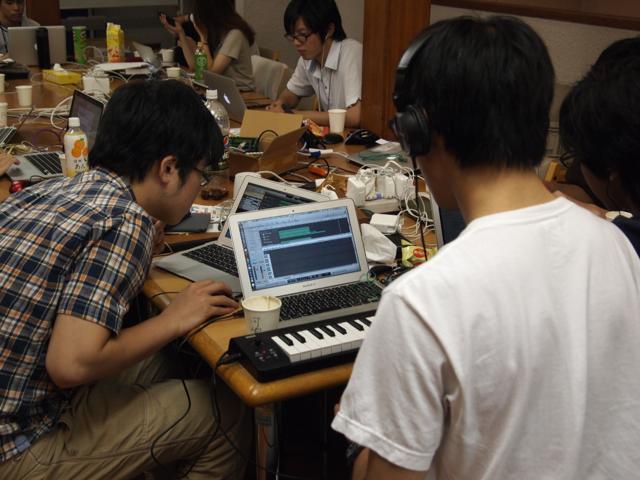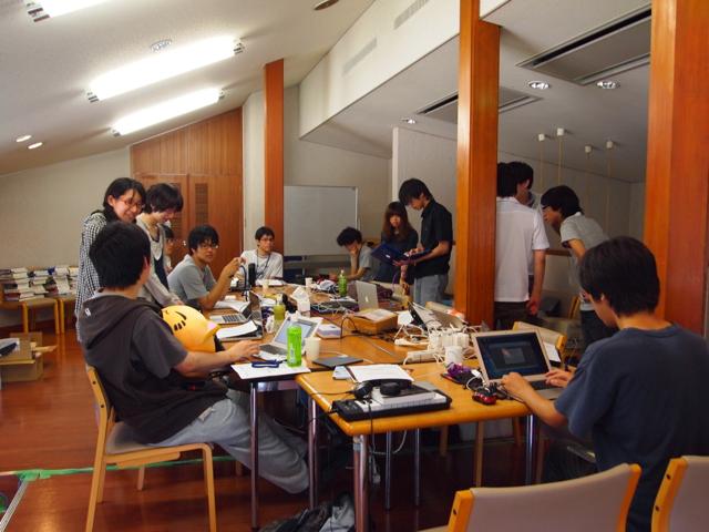 大学近くの神山研修室棟(市原テニスコート横)にて、様々なコンテンツ制作に1泊2日でチャレンジするイベントです。Flashコンテンツやムービー編集、音楽制作などツールを使うものから、iOS/AndroidアプリやWebアプリなどプログラミングするもの、KinectやWiiリモコン、ArduinoやRaspberry Piを使うようなものまで、何を制作するかは参加者次第です!