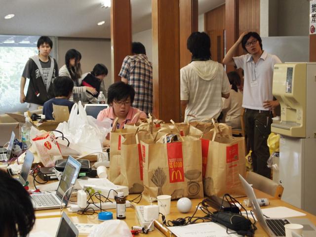 コンピュータ理工学部以外の学生の場合、もし自前のノートPCがなければ主催者側で用意します。参加申込書にその旨を記載下さい。コンピュータ理工の学生は基本的に各自所有のMacBook(もしくはその他PC)を持参してもらいます。
