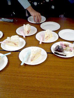 ホールケーキを二つばかり買ってきました。せっせと人数分切り分けて・・・