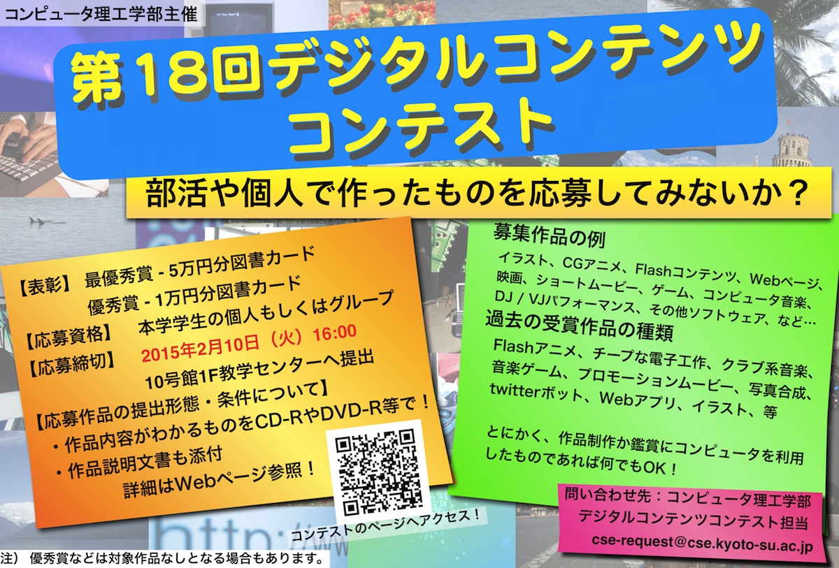 2014年秋学期実施のコンテストの審査結果と作品募集情報を載せています。