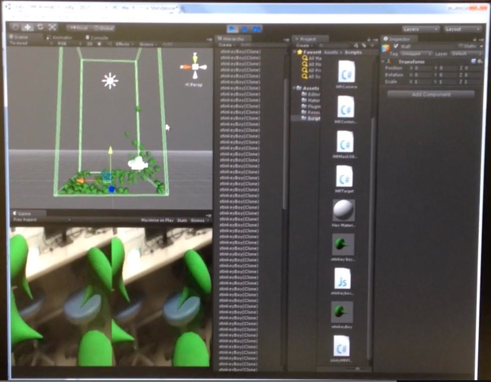 リアルとバーチャルを違和感なくリアルタイムにミックスする事で リアルな世界にバーチャルな世界が入り混じった空間を構成、逆にバーチャルな世界にリアルな世界をも構成する技術です。MRシステムを応用すれば、あたかも自分が立っている世界で 仮想的な出来事が目の前で起こっているような体験を引き起こす事も可能です。