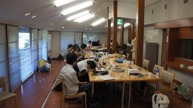 コンピュータ理工学部以外の学生の場合、もし自前のノートPCがなければ主催者側で用意します。参加申込書にその旨を記載下さい。コンピュータ理工学部の学生は基本的に各自所有のMacBook(もしくはその他PC)を持参してもらいます。