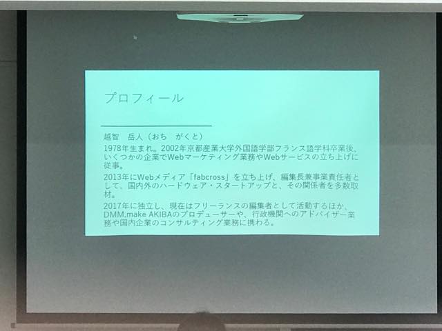 | 2018年9月20日(木) | 【特別ランチタイムトーク】 ハードウェアスタートアップで働くという事 (fabcross編集者&DMM.make AKIBAプロデューサー&本学OB・越智岳人氏) |