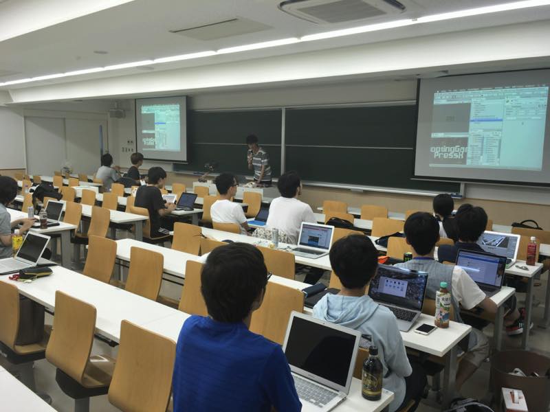 イベント初日には、サウンド・音楽制作講習、Unityの初級者講習、などを企画しています(それぞれ特別講師を招聘します)。本学学生であれば学部・研究科、学年を問わず、誰でも参加できます。しかも参加費は無料です!