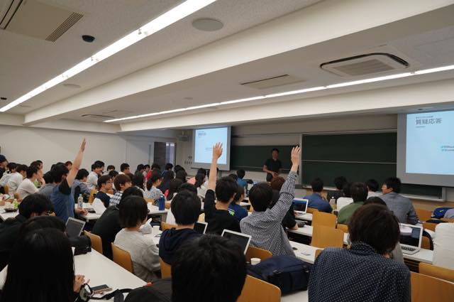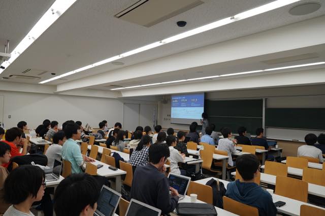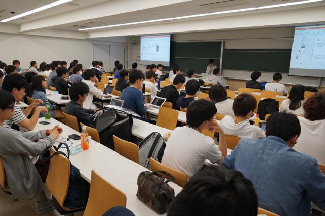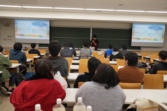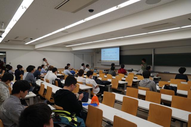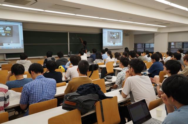 授業では直接扱わないような専門分野に関する様々なトピックの紹介や、デモ、学生LightningTalkなど、週に1回のイベントとしてランチタイムトークを行っています。2019年は、春・秋学期共に金曜昼休みに、14102教室(14号館1F)にて行いました。