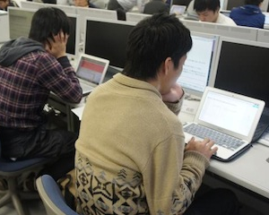 情報理工学部では、前身の旧学部の時代(2008年)から、学生各自がApple社製ノートPC(いわゆるMacBook*)を所持し、コンピュータを最大限に活用する学びのスタイルをとっています。特にプログラミング演習科目を始めとする多くの専門講義科目において、授業内のみならず自宅学習も組み入れた様々な演習課題を設定することで、コンピュータ技術を可能な限り高い水準で習得することを目指しています。そのためには、学内での学習環境と自宅での学習環境を同等とすることにより、授業で学んだ内容がそのまま活用できることが理想的です。
